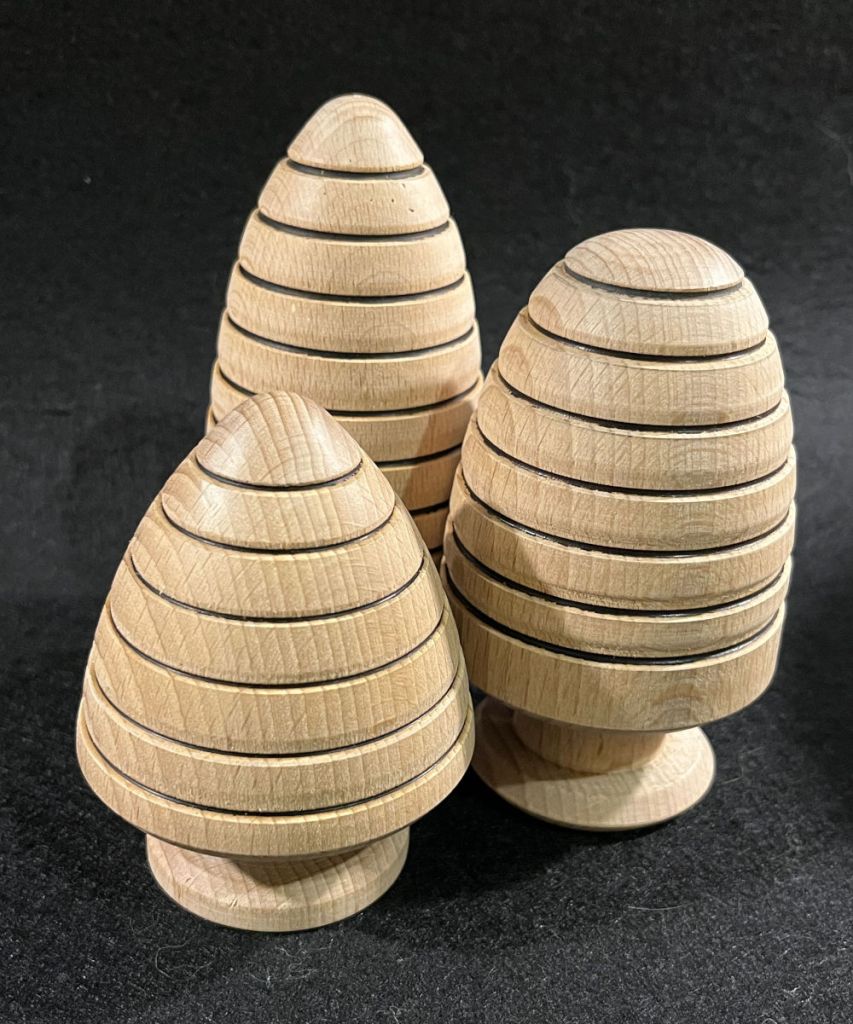 3 Deko-Christbäume “Bauhaus” (Rotbuche), Höhe ca. 11 cm